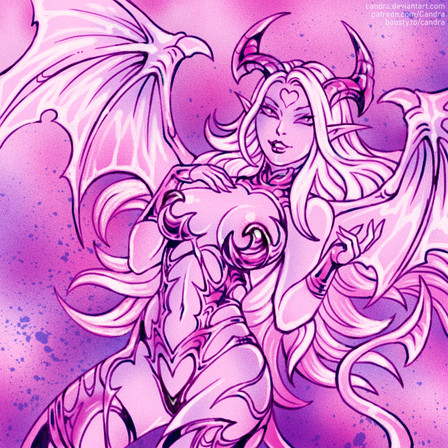 gorgeous color work; i particularly like the way the colors of the flames contrast to the shine of the armour.