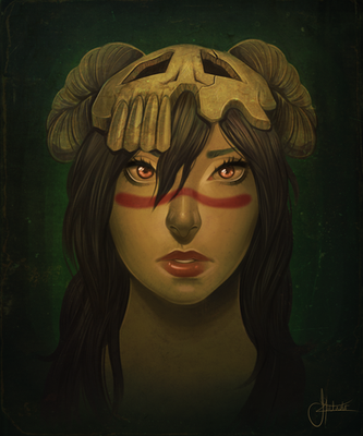 That is incredible! <3333 So epic. Her pose, her strong profile, and that bird's talons~ it's all so dramatic.