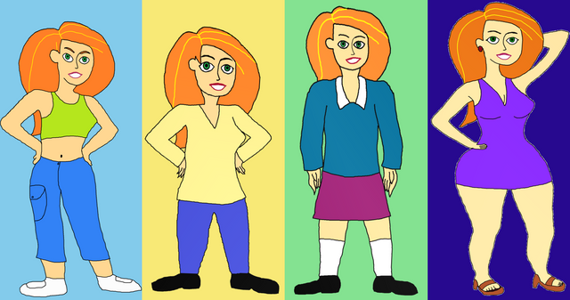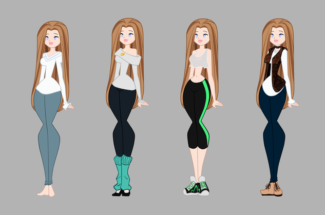 Holy crap!! You've improved so much! It's interesting to see all of the different styles and coloring techniques that she went through. Your newest one looks amazing! The details on the pants and shoes is wonderful!