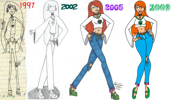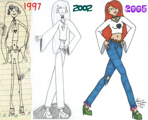 The first picture of her one of my earliest pieces of artwork that I can find in one piece. and every couple of years when I find it again I re-draw it. Just to keep tabs on how I'm doing as an artist. am I getting better? am I getting worse? have I not improved at all? have I done something completely different? I'm a big fan of the theory that those who do not learn from history are doomed to repeat it...and who would want to repeat any of these? ew...
