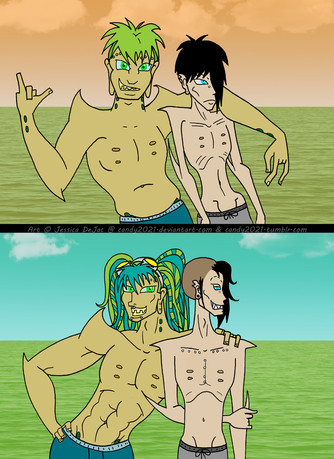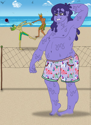 Summer is dying but before it's dead I wanna finish the Gloom Beach series. so have Ox playing with a beach ball. in case anyone is wondering why Ox has so many tube entrances on him, he has to keep switching them around so that his veins don't collapse.