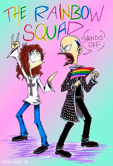awwww people are such...grrrr..catholic people tend to be...mean. (nice way to put it) like Mr. Bush who wants to bann gay marrage. *eye roll* by all means, don't worry about the violence in your country but worry about people being in love. it's really sad that gay people don't get equal rights and are treated as if their love is a sin. i this picture. not only becuz i'm big on gay rights...but because the characters are adorable. ^_^ rainbow clothes whee, so coot. deffinate fave+