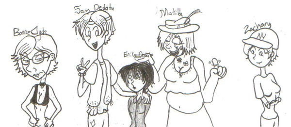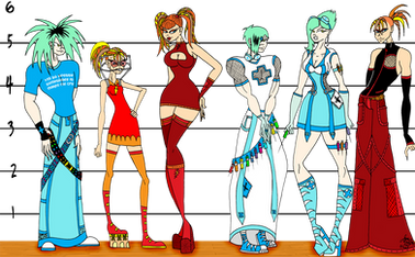 Anyone who goes threw my gallery will notice I have a weird fixation with gender bending my characters ( [link] ) and those of my friends ( [link] ) It's been a long time since I indulged in this fun little project.I figured it was time to revive,refresh and renew this little gem from my art archives [link] this time around I added more characters ( and took out Missy, whoops, I'll post a picture of just her in the near future) god the artwork in that is so bad I think I died a little bit inside looking at it again.the new one was so fun. to make the boys into girls was a blast, making the girls into boys was a tad harder BUT fun all the same. ya'll know the characters now meet their opposite sexed counterpart, from left to right - Thora, Maria, Marty Joe, Jack, Andy,and Maxine (those names suck out loud)