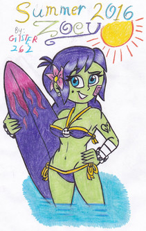 The drawing itself is spectacular, I love how you've approached Kemmy's design and her ATTITUDE! She looks amazing in your style And having her sitting in a rubber ring in the middle of a toxic spring with drink in hand is perfect for her!