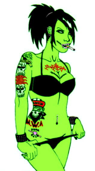Anyways, this is his Character Kemmy! whom I was instantly drawn to because uhm, hello, radioactive sorority girl who goes skinny dipping in toxic waste and gives zero fucks about the consequences.