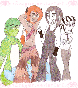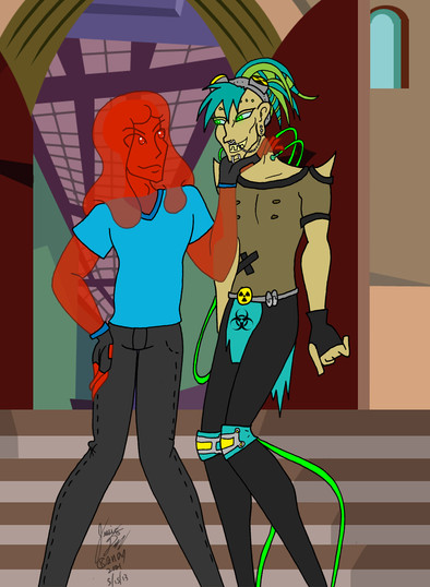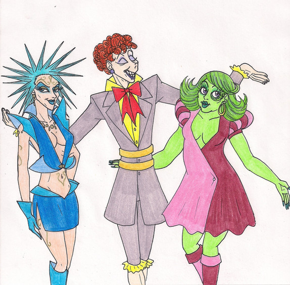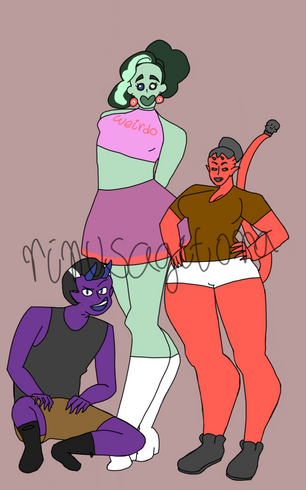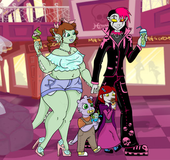 A little something I did for LunaBellOx going on a blind date with her twins Sydney and Ash! Ox isn't particularity short, Cyclops ladies are just very tall! This boy may be biting off more than he can chew.