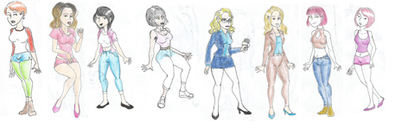 this image is a bit dated...and I had male counterpart that was suppose to go along with it, but with my computer being dead I guess the girls only version will have to do. lets just pretend this is the cast for a show about an all girls high school. well call it "Fool School"To the un-Trained eye... I am sure this looks like a somewhat well balanced cast...so many girls! so many cliques! so many colors and styles!