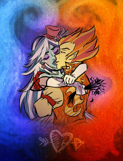 Just in time for valentines 8D eep, they look so sweet together >u< love the splatter heart in the BG~