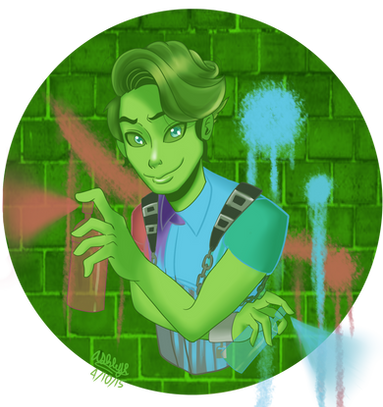 Wow this is gorgeous,i really love how the bright green stands out from the rest of the picture,Ox's outfit suits him really well and I also love how you drew them together,they really stand out against the background,and all that added detail with the messed up cars in the piles of trash is fantastic.