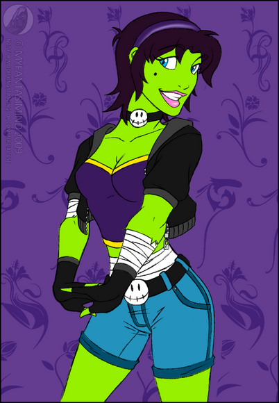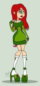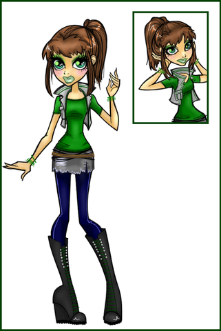 She's cute! I love how well you did her hunching over, and her pose. The colour scheme is also nice. I love the green hues used for this. As usual, your attention to detail is impressive. Excellent composition!