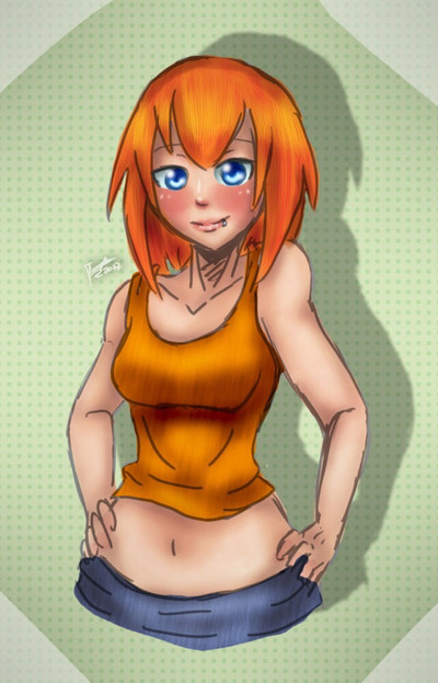This is my first try at drawing a chubby girl, and she was surprisingly easy to draw considering how much trouble I normally have with that kind of pose. :'D