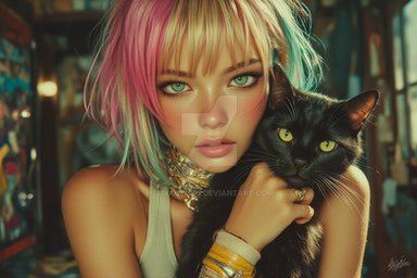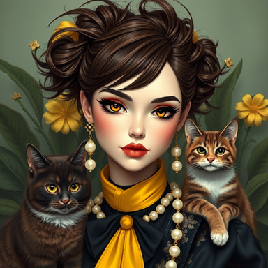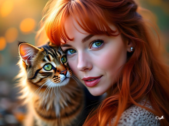 #beauty #redhair #digitalart #portraitgirl #vintage #auburnhair #fantasy #fantasycharacter #kitten #kittens #siamesecat #aiart