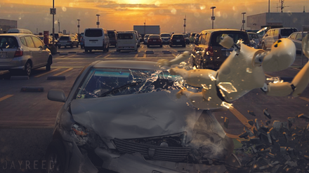 Great work of the destruction of the car the glass shatering looks amazing