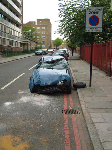 Who the hell put this god damn concrete thing in the middle of nowhere right into my way?!Well it's too bad about the nice car...