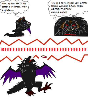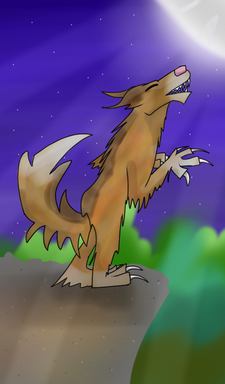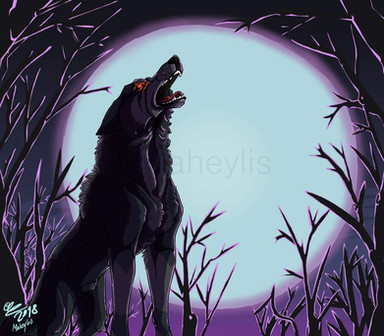The Great Animal is described as having a wolf-like appearance in the head and I took that and rolled with it. Here, Damian howls in the night, something he does to lure in wolves to pick off for dinner or to trick hunters.