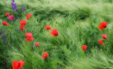 The basic contrast of red & green are lovely. A touch of orange thrown in there is just as nice. I've rather envious you've actually found some poppies, and in such a gorgeous environment as well. Nicely shot