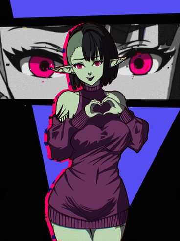 #digitalart #animegirl #originalcharacter #goth #lingerie #modernfantasy #orc #persona #punk