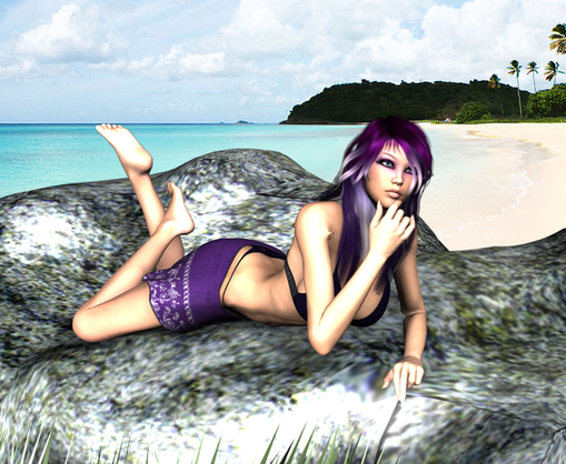 It is summer now and Alice has sunbathes on a lovely beach.Model: Alice bikini by bondlaw.