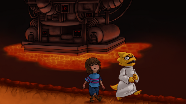 Magnificent. You made Core and lava look really charming and it is perfect background for Sans with Gaster looming next to him. Lovely touch.