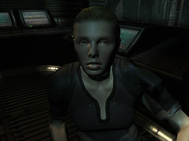 As they approach a door leading to an elevator Christine motions to Rhodane, points at the door uneasily, then makes a pulling motion with her hand. She seems hesitant to go near it. Rhodane checks the nearby maintenance terminal. It's locked and her hacking skill isn't good enough.Rhodane "I need you to go down to the manual bypass room to regulate the power."