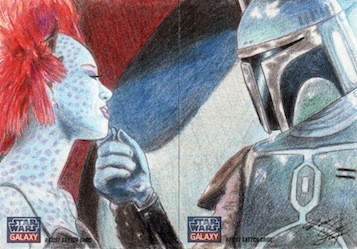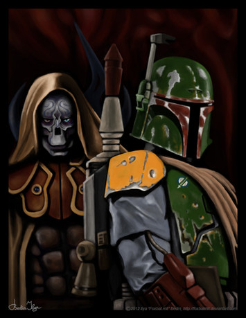 This is insanely beautiful - the colors are out of this world, and the attitude from both characters are just oozing personality - sly flirtation from the dancer, danger filled suaveness from our favorite bounty hunter. GOD I WANT HIM SO BAD RIGHT NOW. Gorgeous, gorgeous work.