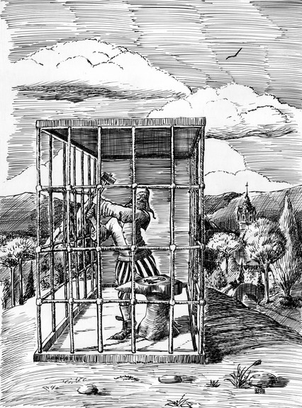 #medieval #ballandchain #cellphone #phone #sepia #shackled #woodcut
