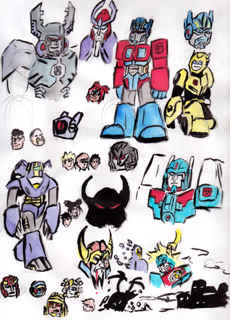 References: IDW’s “Transformers: The Ark” (essential for character sheets), Wikipedia links, Google image searches, toy sites, YouTube videos for color schemes.
