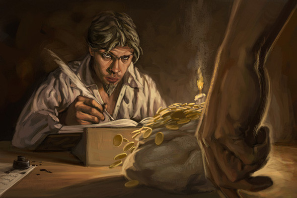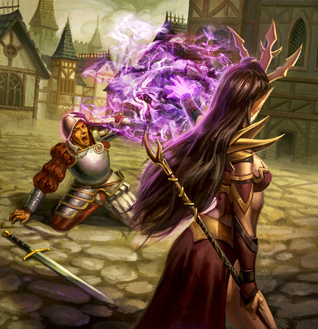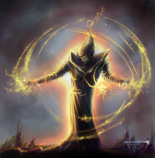 Very nice using the "faceless hooded figure", adds mystery to the evil sorcerer.