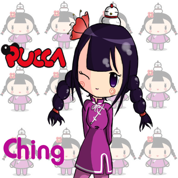 I did not draw the ching or create the ching logo... I scanned the ching information page in my "Libro de Amistad" book I recieved in Puerto Rico. I did create this combination together with the Ching in photoshop... I made a brush out of her too, so yeah... ain't it kyuuute? I love Ching's logo... It's soooo kyuuuuute!lol this pic is kyuuuuuuuuuuuuuuuute!