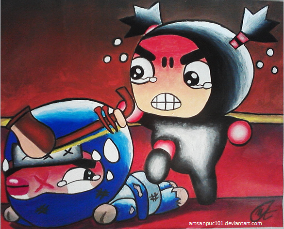 Also, you can see that A-Pucca and A-Garu stay true to being evil... I kinda lessened the evil in Garuche and Puchia (slightly) because of their violence... I took down MOST of the pictures, but here are some examples... [link] [link] [link] (Honestly... I have worse in my harddrives... -o-... I tookem off cuz I didn't like them on my profile... Though I shouldn't say much cuz the Ken pics look MUCH worse... xD)