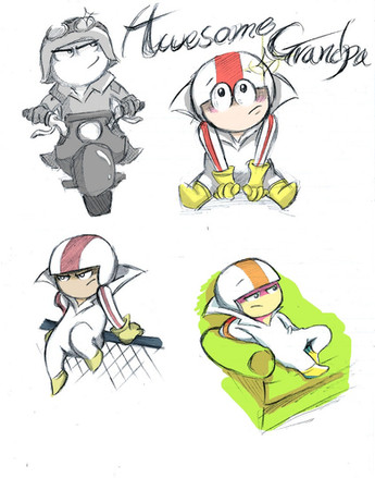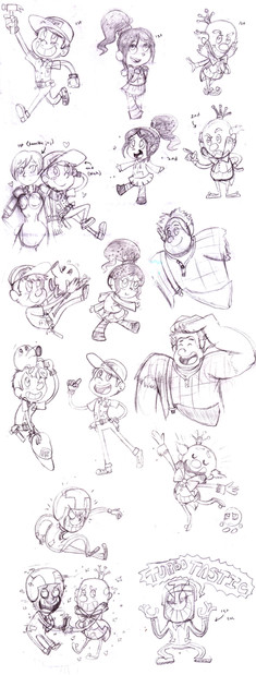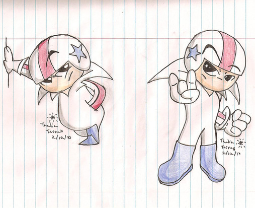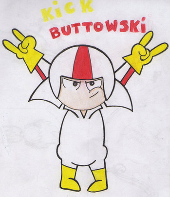 One is in my style... Kick doing his signature pose... xD... and the other 2 are me making an attempt to draw him in his regular style. They're scetches from "If Books Could Kill" since it was one of the episodes I attempted to record through my internet video recorder but FAILED... X_X
