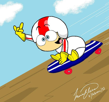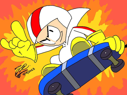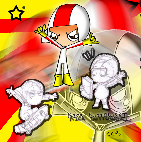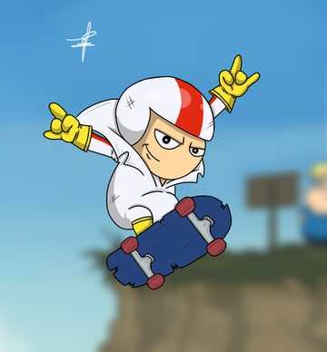 This is Kick in his style, with a cheap background and my crappy effort on his scateboard... X_X