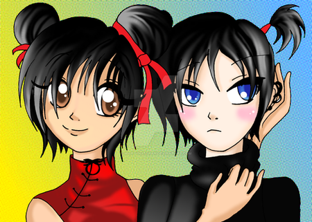 The first thing that came to my mind was Pucca and Belle (Since I'm in an Agoos City mood...
