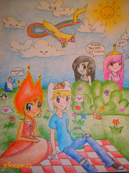 Basically Gunter being troublesome while Simon and Betty are enjoying time together... too lazy to add details like a basket or knocked over food and cups and plates etc... but... use your imagination lol...