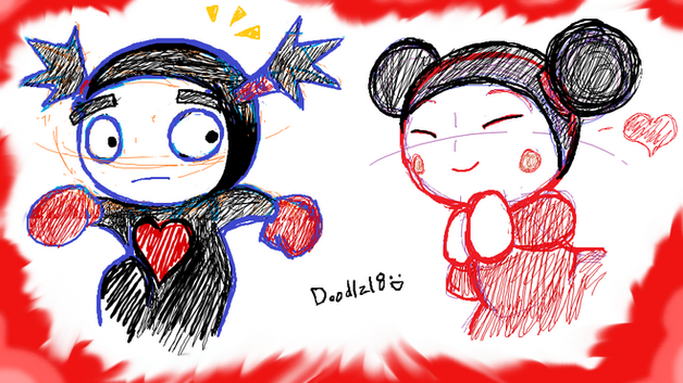 I think Puchia is more interesting. Pucca is a bit too goody-two-shoes and boring (like me! sometimes) whereas Puchia always make a scene, and I like drama...a bit too muchΒ Β