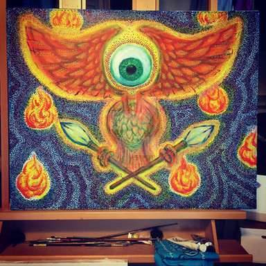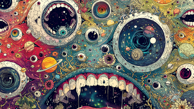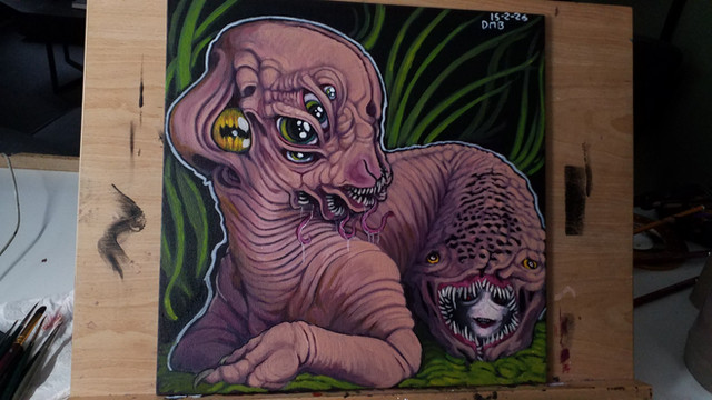 #acrylicpainting #colorful #creatures #painting #pointalism #strangecreatures #symmetry #weird