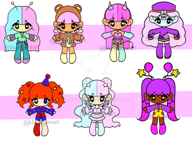 I found this super adorable base by @ VioeXephire and I may end up doing a lot of characters with it!Characters from the left are: