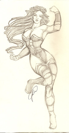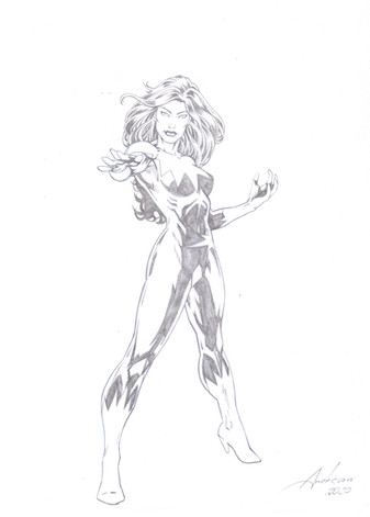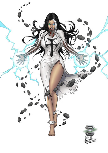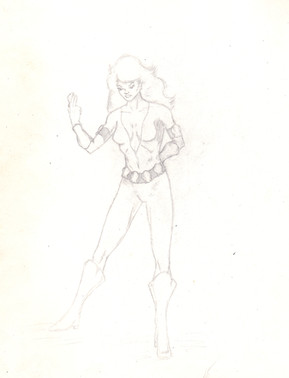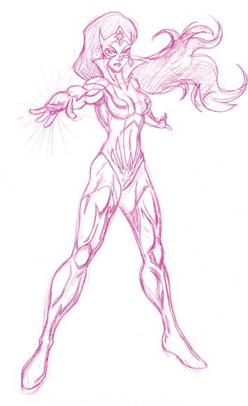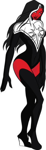 She wears a battle suit specifically tailored to her power set and helps protect her when in battle or travelling through deep space. The suit also comes with a protective navigations visor which she uses when in battle or making interstellar space travel