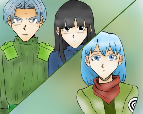 Bra's groin is pressed up against 17's, maybe she's getting something sexual from 17 that she's not getting from Goten. Sorta like how VXB started out as a purely sexual relationship and then the emotions came? IDK She also doesn't have her hand firmly on 17 like she does Goten, maybe she's afraid he'll run? 17's looking at her intensely, impatiently, but kinda nervously too, Almost like he's afraid she'll choose Goten over him because he does have feelings for her but can't bring himself to say it. Goten just wants Bra back and maybe she does want him back, ergo their intertwined fingers. But Bra looks like she might let go. And if she does choose Goten, 17 will leave her for good (jacket).