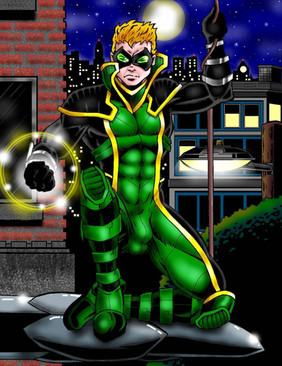 Tel was a student and athlete studying quantum mechanics. While working with his professor, the two discovered a means to traverse other realities using vibrations, electro magnetism, and gravity. During their work, Earth's dimension was discovered, but it appeared to be at a stand still. Further studies revealed time moved significantly slower. Tel was fascinated with the prospect of exploring a new world. He used the professor's calculations and equipment to alter his physiology to survive the dimensional divide. Tel passed into Earth's 25th century, but in the middle of New York's Times Square. The authorities apprehended him and the hero group Galaxy Guard were called for one of their members , Master Mind, expertise. Using a translator device, Master Mind learned who Tel was and how he got to Earth. Unfortunately, its was determined that Tel would die if he tried to go back through the dimensional divide. Even more tragic, Tel would die if he remained in Earth's dimension. Master Mind found a way to stabilize Tel, but the stabilization had a side effect. Tel could control his temporal velocity up to the rate of his home dimension. This gives Tel the appearances of super speed. As gratitude for help he offered during a case, Tel was granted membership to the Galaxy Guard as Grease Lightning. Members of the Guard wear uniforms which allow them to fly. Tel can do anything he did before at very high speeds. Alterations to his physiology allows him to resist the effects of friction.