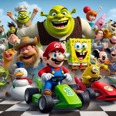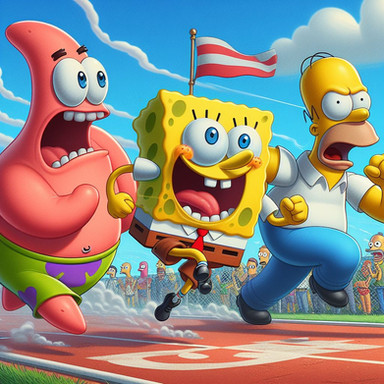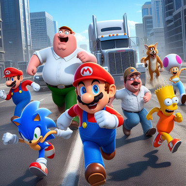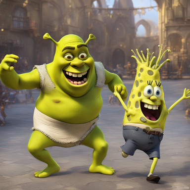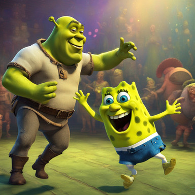 Here's more AI art I didPrompt:Β spongebob, peter griffin, mario, shrek, sonic, mickey mouse and elmo doing exercise