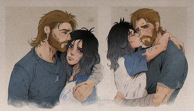 AH I love the feel of this one! From the poses to their facial features! ;v; Dunno if it was intentional, but her cheek is scrunched up naturally against his peck and it honestly adds so much to it ;A;