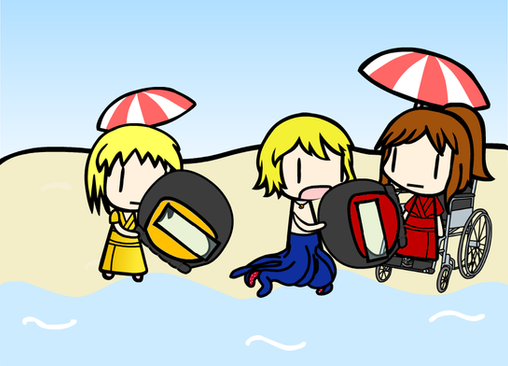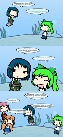 Gift exchange for . He asked for his characters Gold, Cooper, and Kalua from Namaka Hamou experiencing snow falling on them. In their story, they live in the Hawaiian islands, so snow is very rare there. Maybe if they went on some of the taller volcanos of the main island during the winter they could get to see it.Gold, Copper, Kalua ©