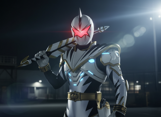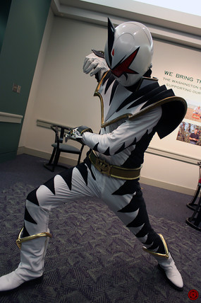 Silver Psycho Ranger made by Aniki Cosplay and modeled by Lance Jaze of Jaze Cosplay Studios