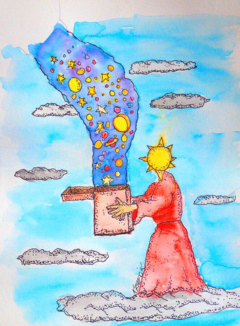 The gamma ray is our mind that is being stressed and worried about the problems that happen every day, while the girl with the stars is really what we are, we're talented people who can make our goals come true. But unfortunately she observes more the gamma ray than his own stars in his hair