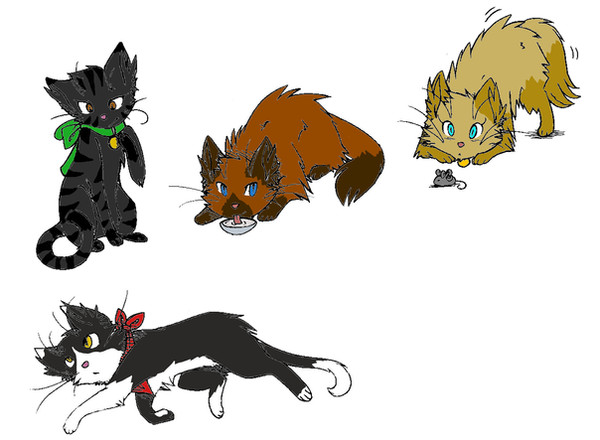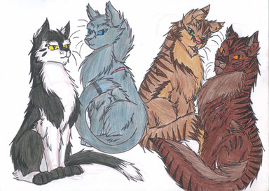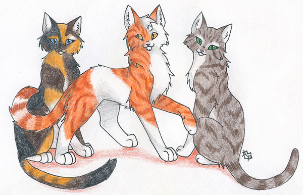 *adds to cat collection under shirt* now i has Dunemask, Wolfpaw, Ghost, Ghost's girlfriend (i can't remember her name! the RiverClan one!), and now these three. *is getting REALLY crowded under shirt* *strolls away, whistling innocently, while trying to hide the fact that there are 7 cats hidden under shirt*