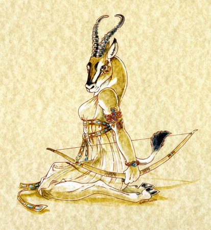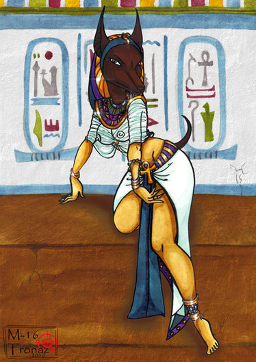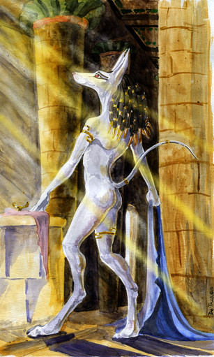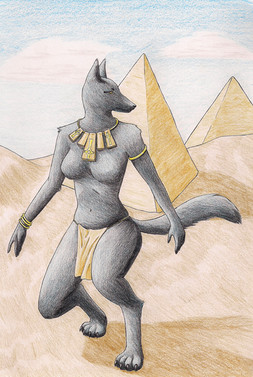 Egyptian myths; always giving me excuses for furry.Early sketches here [link] and here [link]