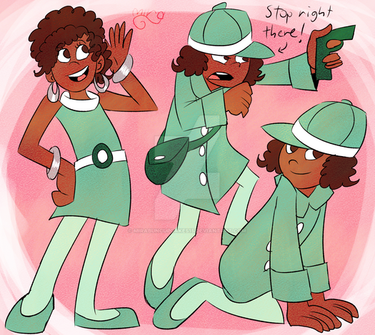 I've never been a fan of " business women " style cloths, mostly the pants, but i like her design over all, she's cute and has a nice pallet c: