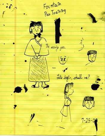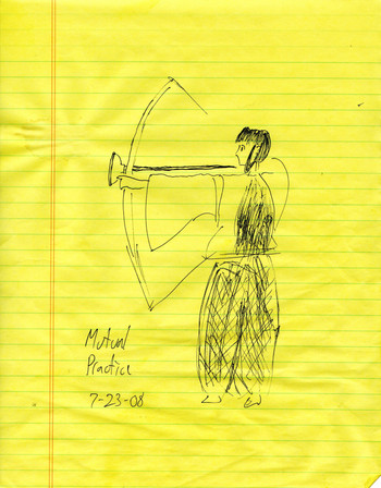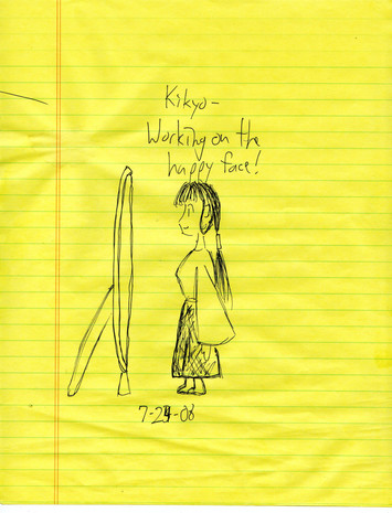 Kikyo, from "Inuyasha," doing regular miko things, like welding, deep sea diving, etc.Curiously, I seem to have made Kikyo left handed. I tried drawing her profile from both sides this time, and the images where she is holding things are the images where she's facing left.