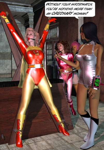 I think a great idea for an image or story would be replay of the ladies in cage with tiger scene. Instead of a tiger, the door could slowly rise to let in two horny escaped convicts who the heroine busted previously. With power cut off, the helpless heroines must slowly wait for the cons to get into the cage and rock the ladies' world.